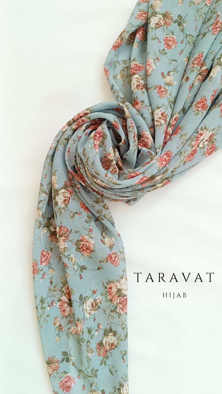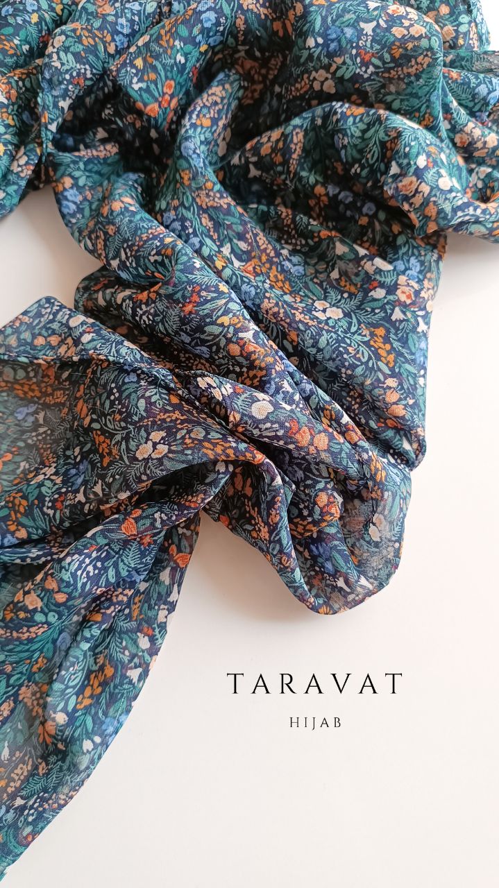 روسری حریر ژرژت گلدار آبی