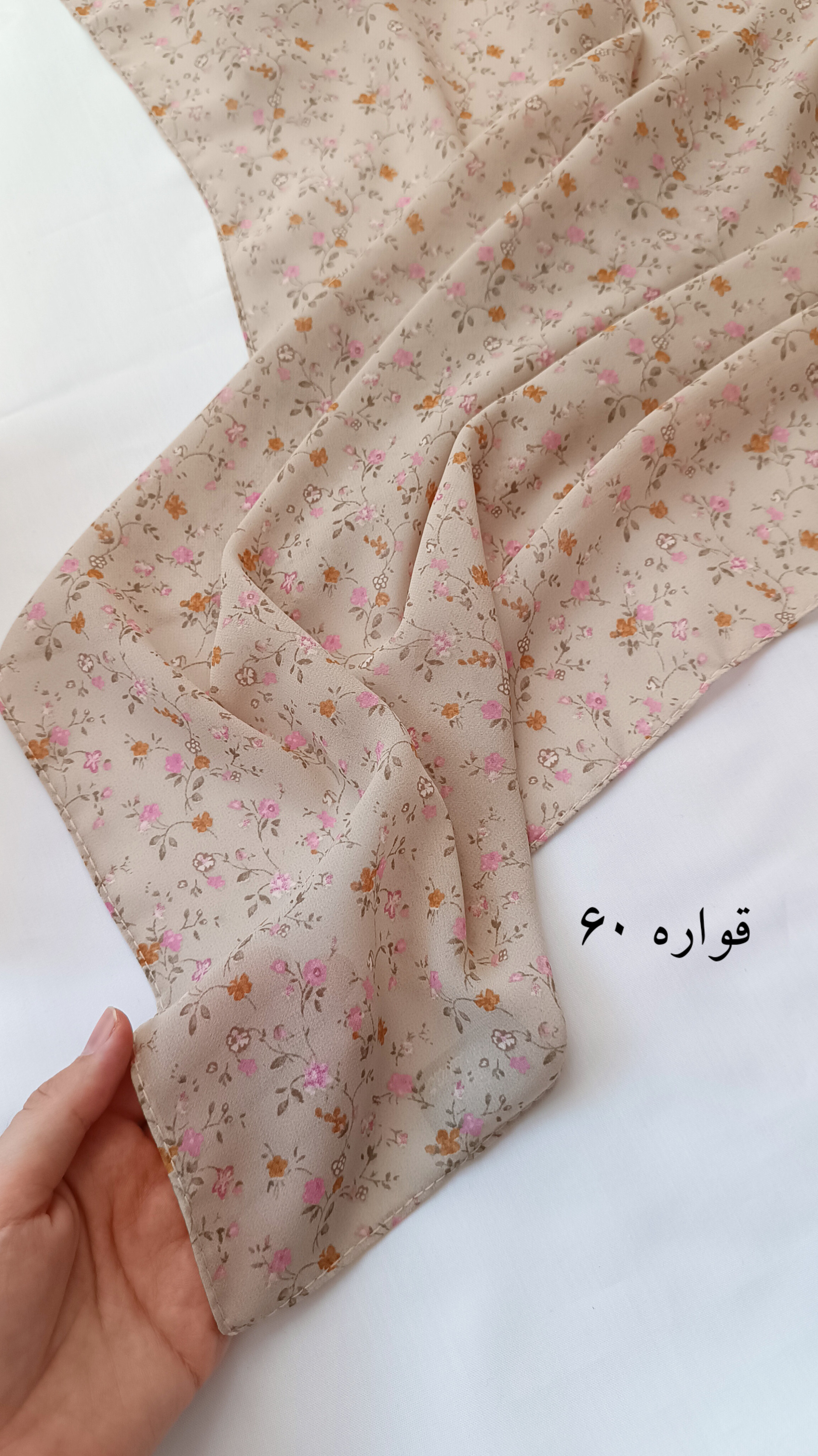 روسری قواره کوچک طوسی شنی گلدار قواره ۶۰