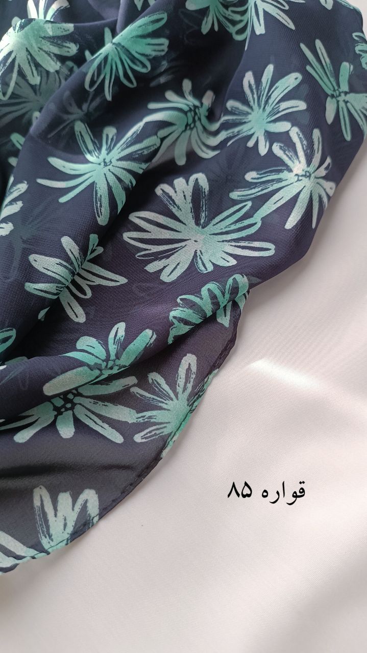 روسری قواره کوچک سرمه ای گلدار گرم پایین قواره ۶۹