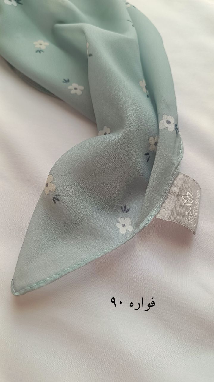روسری قواره کوچک کرپ حریر سبزآبی پاستلی (۹۰ سانت)