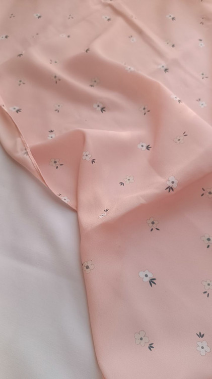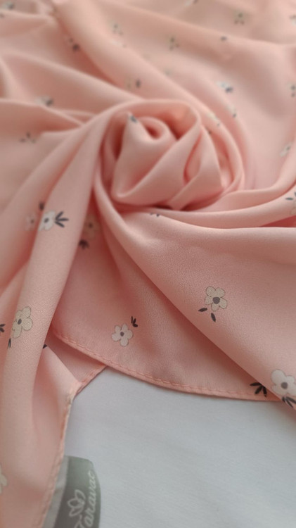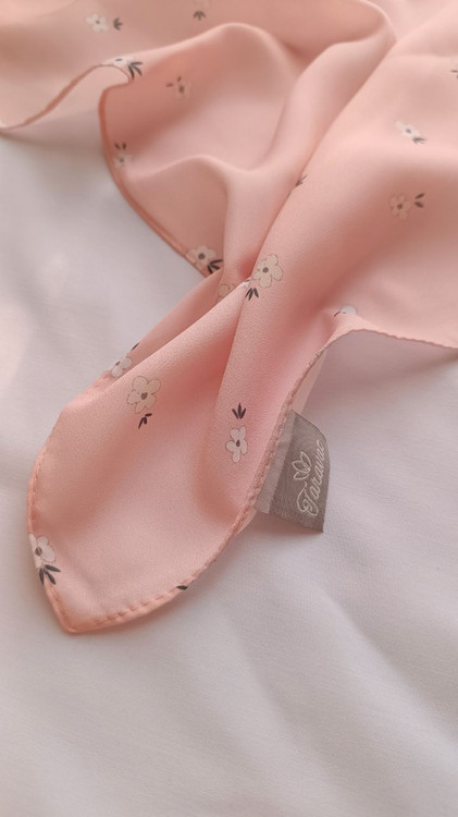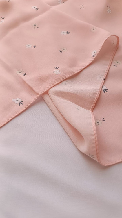 روسری کرپ حریر صورتی ملایم گل سفید قواره ۱۳۰