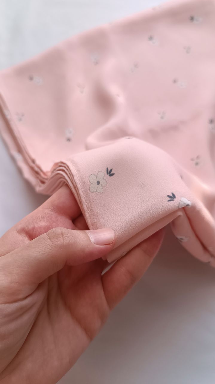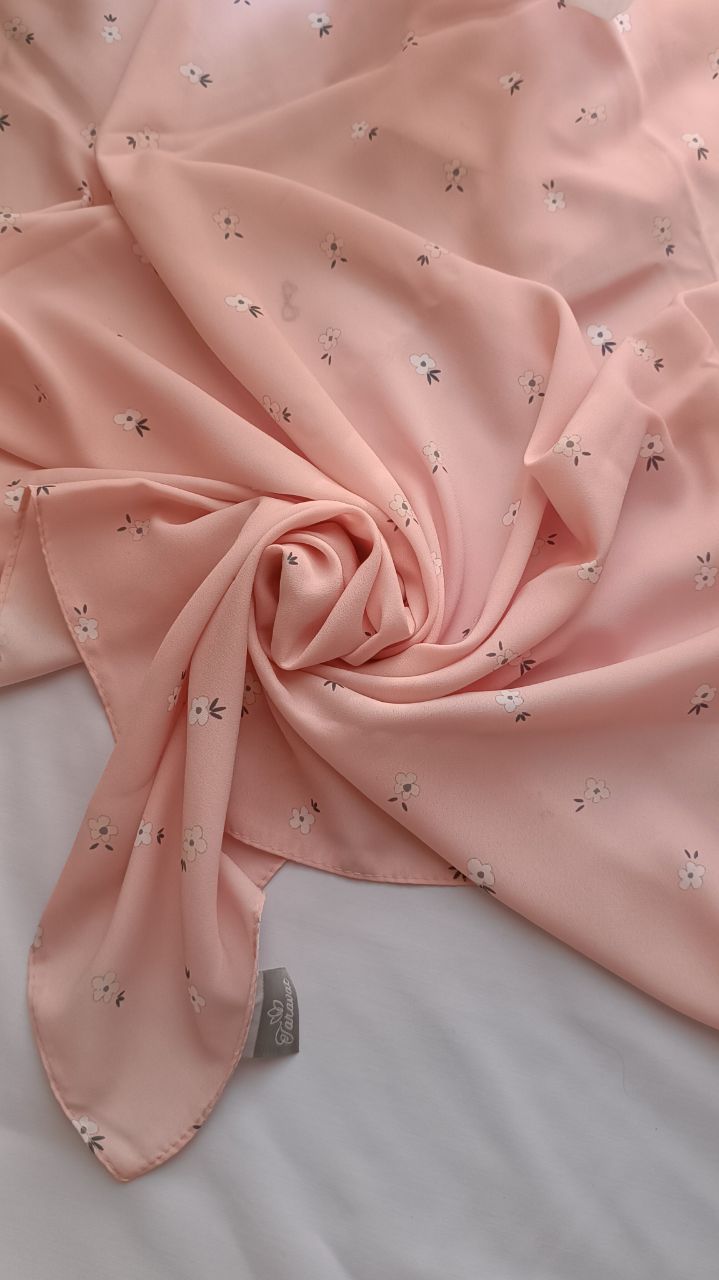روسری کرپ حریر صورتی ملایم گل سفید قواره ۱۳۰