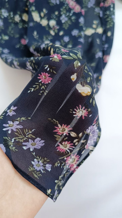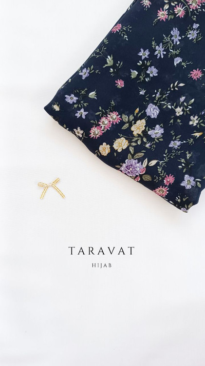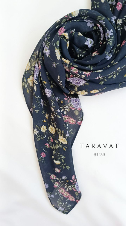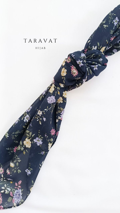 روسری حریر ژرژت سرمه ای گل رنگی قواره ۱۳۰