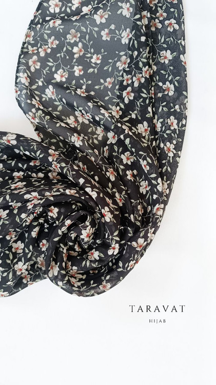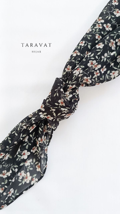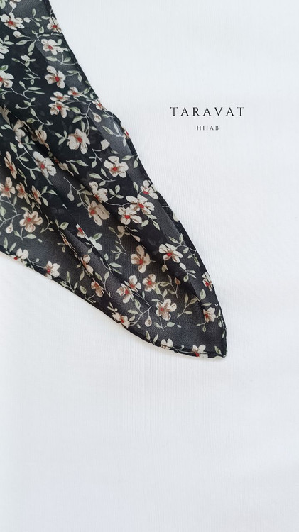 روسری حریر ژرژت مشکی گلدار قواره ۱۳۰