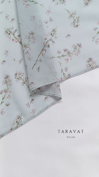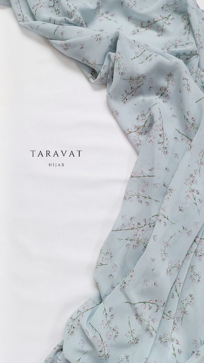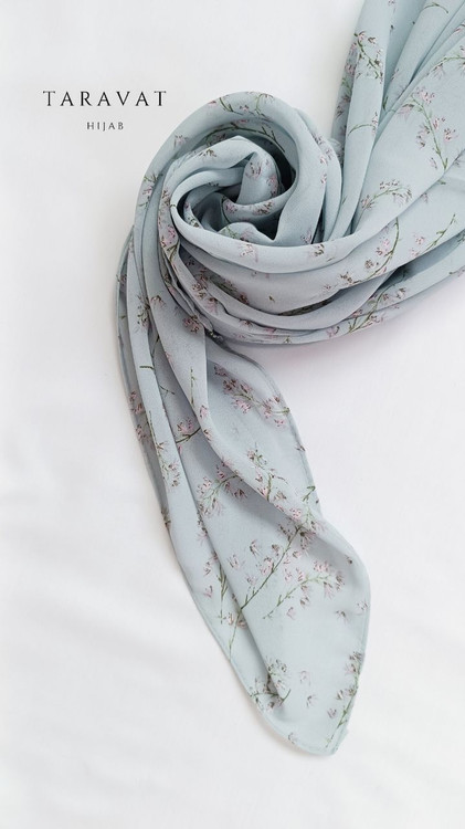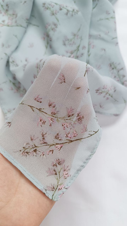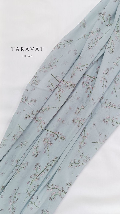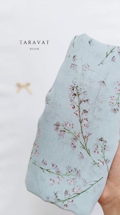 روسری حریر ژرژت آبی روشن گل بنفش قواره ۱۳۰