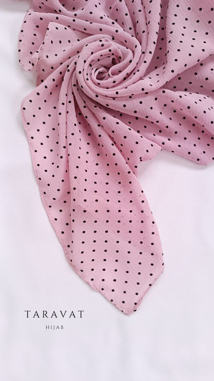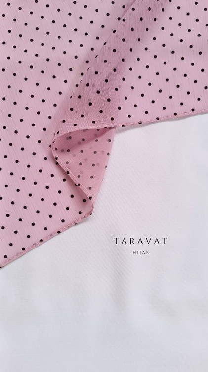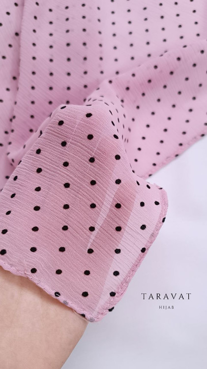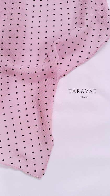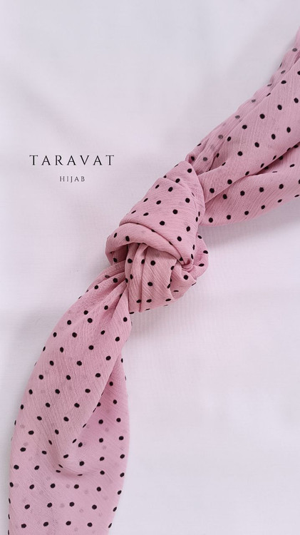 روسری حریر کریشه صورتی خالدار خال مشکی قواره ۱۳۰