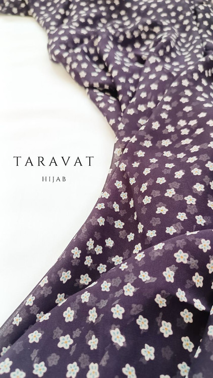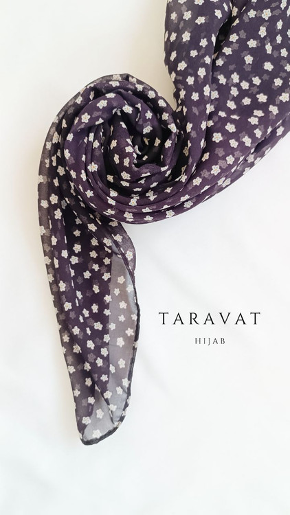 روسری حریر ژرژت بادمجونی تیره شکوفه ای قواره ۱۳۰