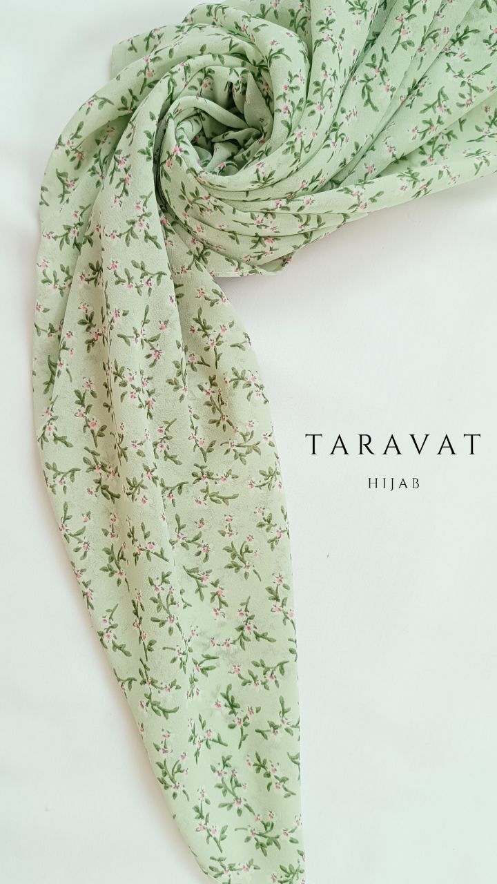 روسری حریر ژرژت سبز گلدار قواره ۱۳۰