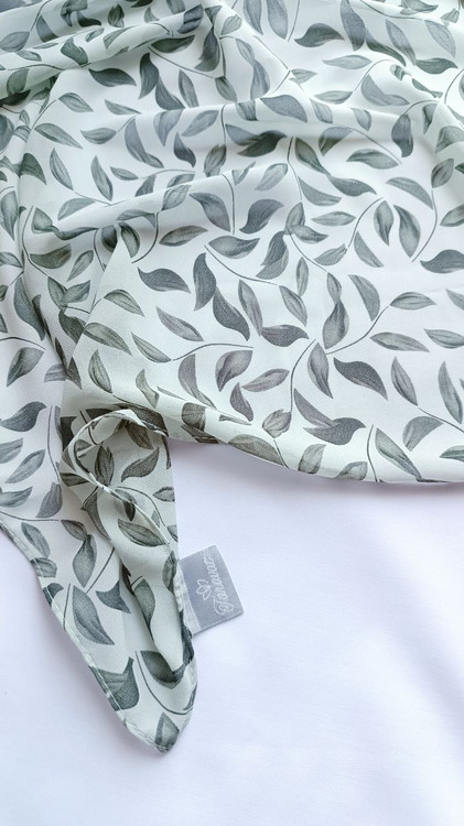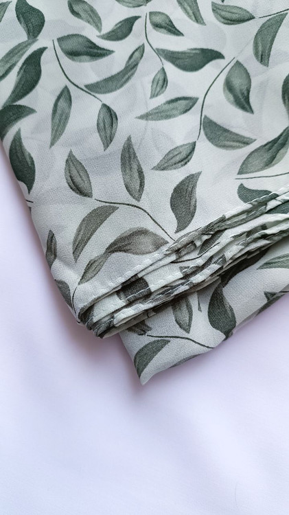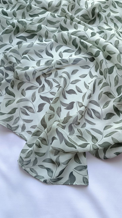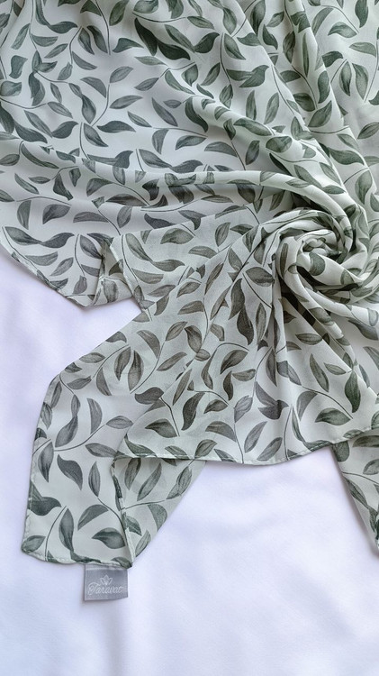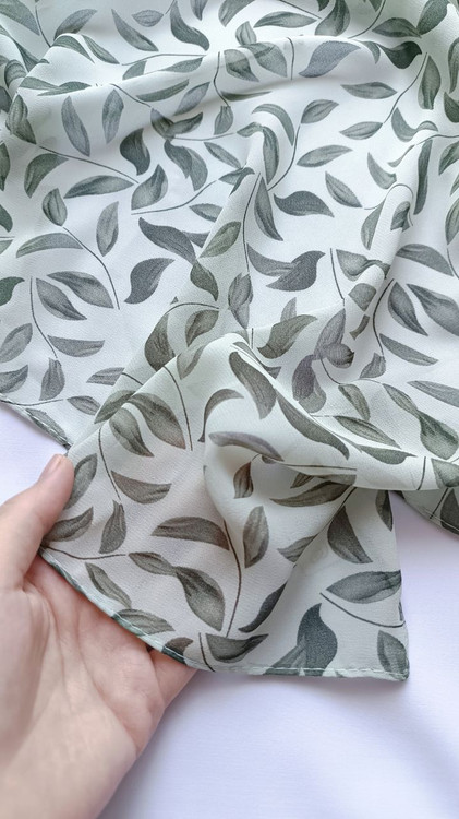روسری حریر ژرژت سبز طرح برگ درشت قواره ۱۳۰