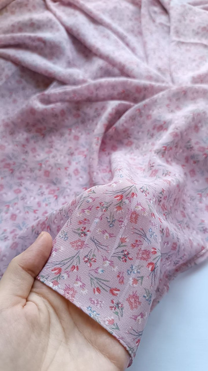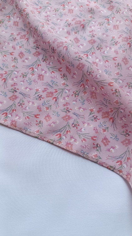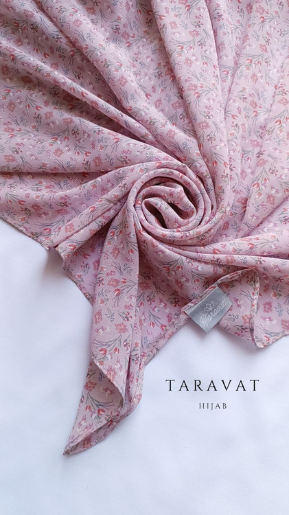 روسری حریر ژرژت صورتی گلدار قواره ۱۳۰