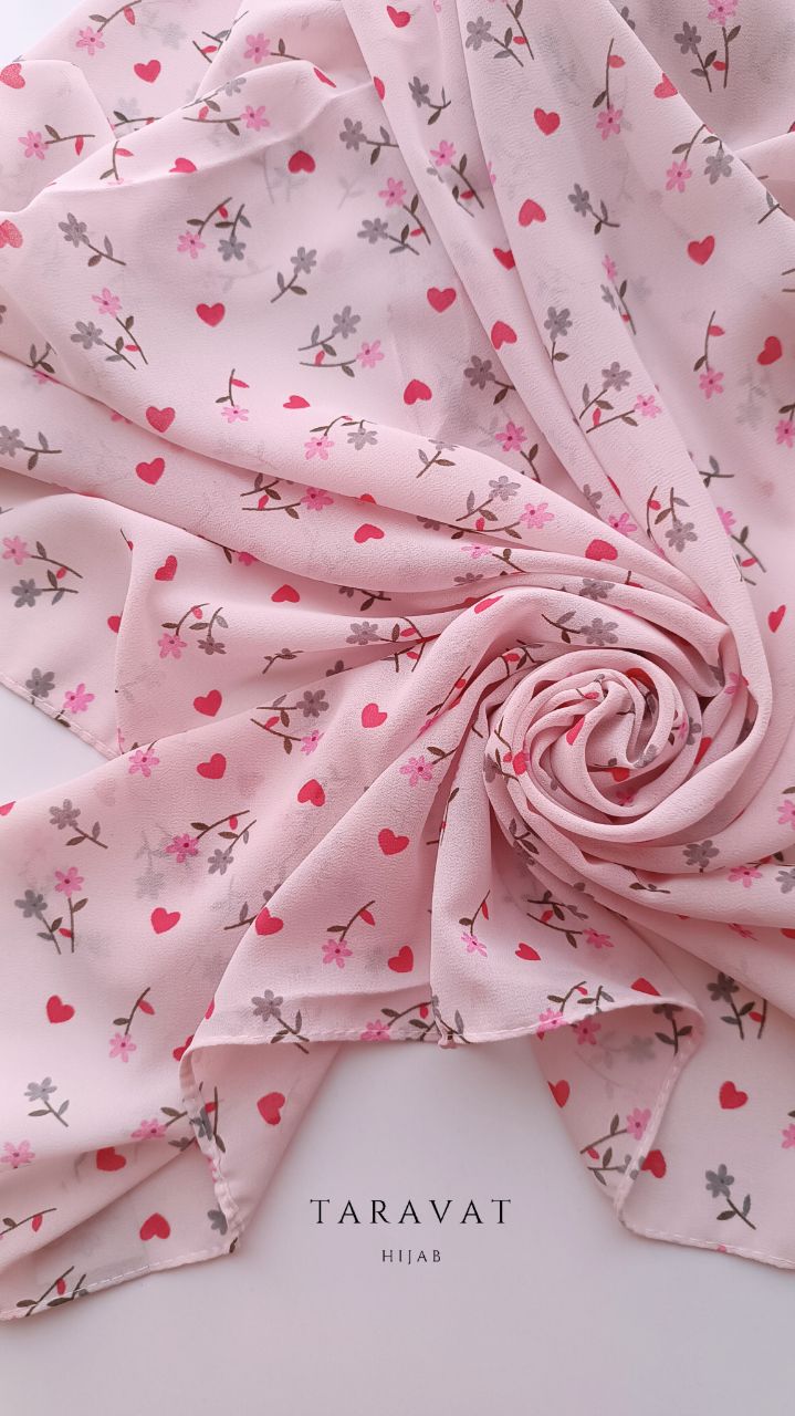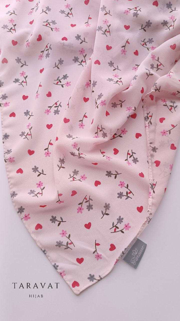 روسری حریر ژرژت صورتی فانتزی قواره ۱۳۰