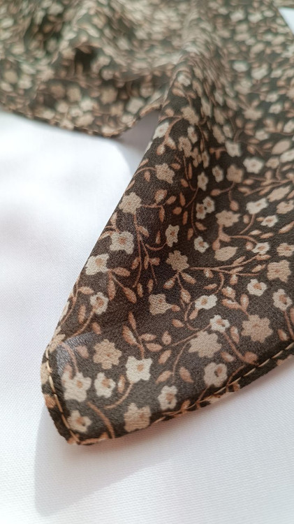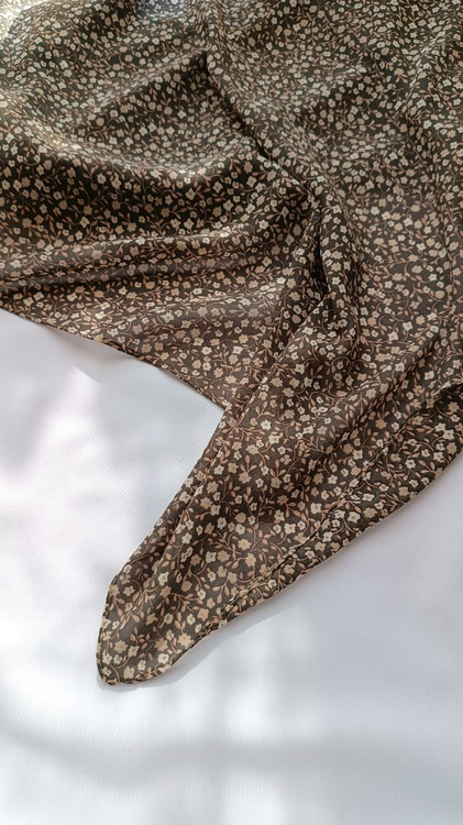 روسری حریر ژرژت گلدار طوسی سبز