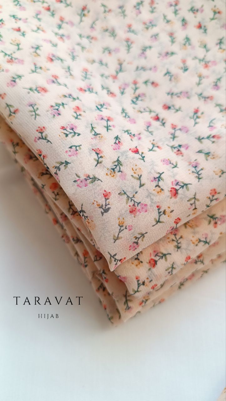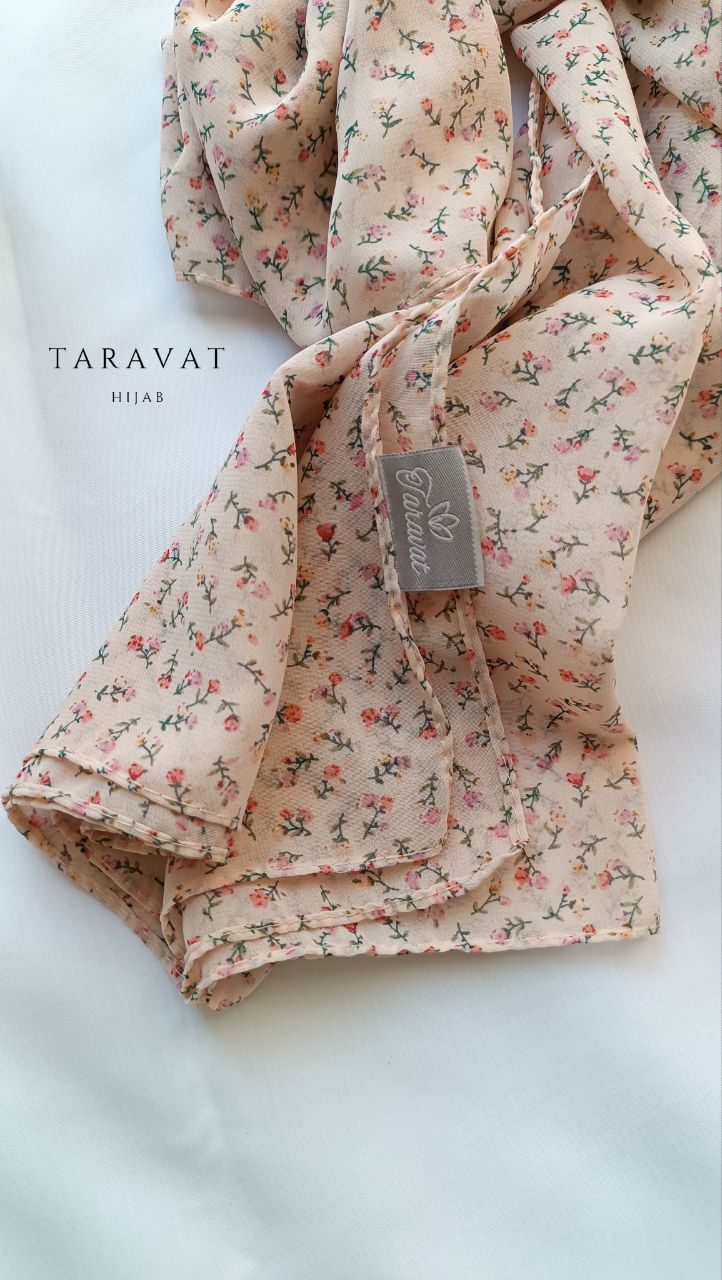 روسری حریر ژرژت صورتی گل ریز قواره ۱۳۰
