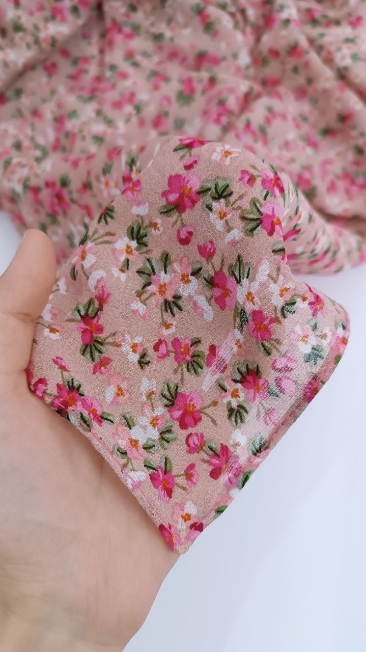 روسری حریر ژرژت صورتی گلگلی قواره ۱۳۰