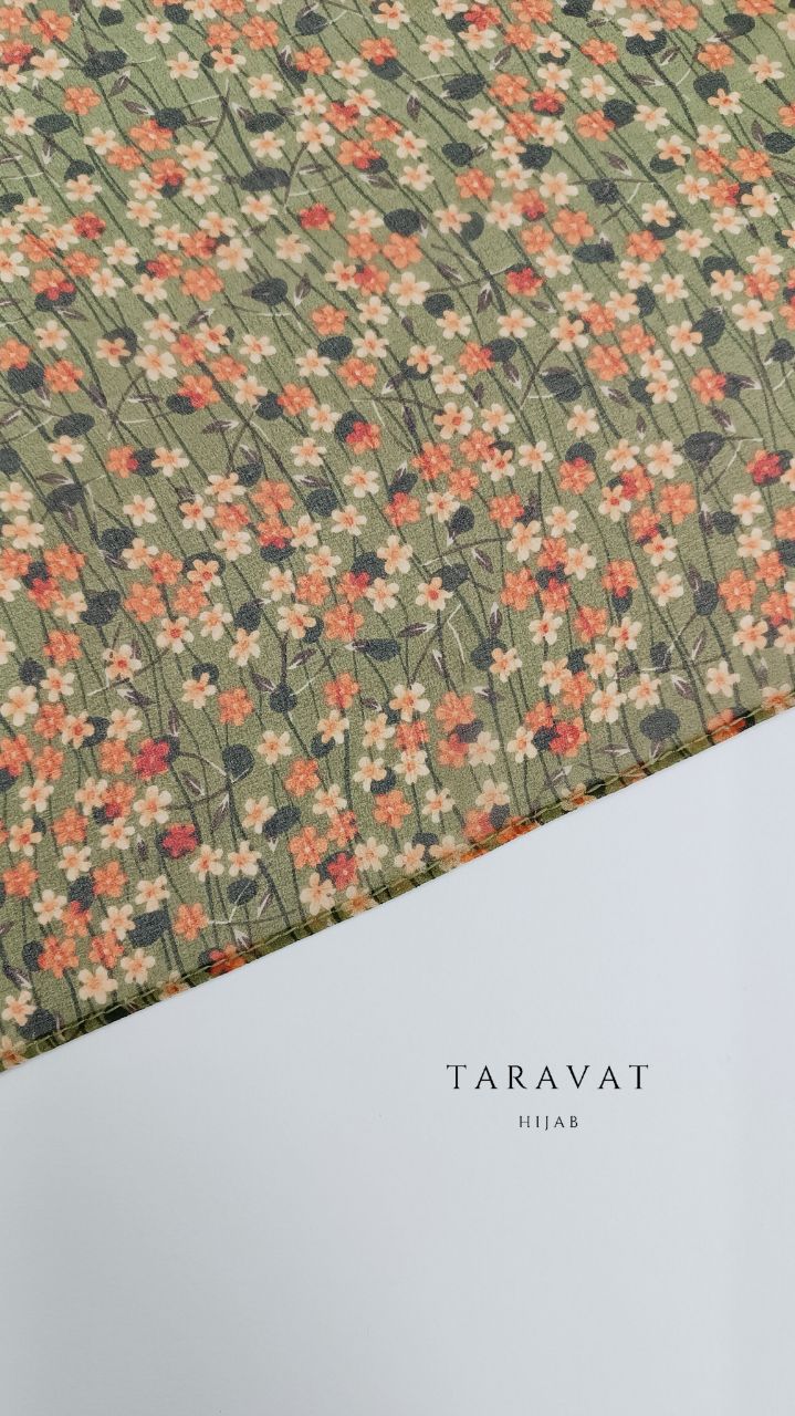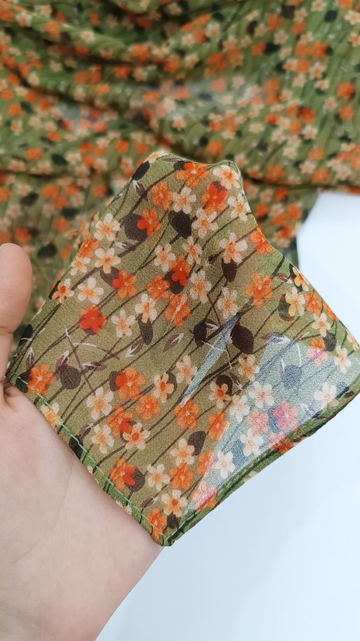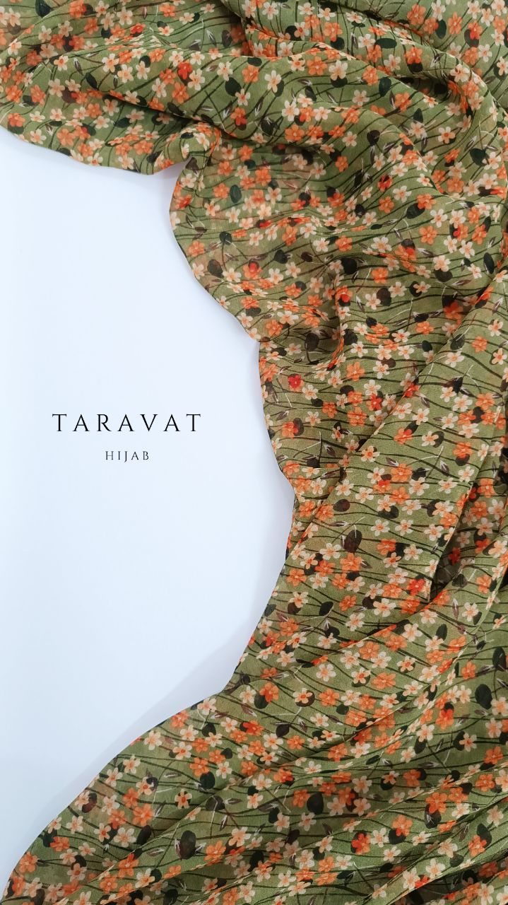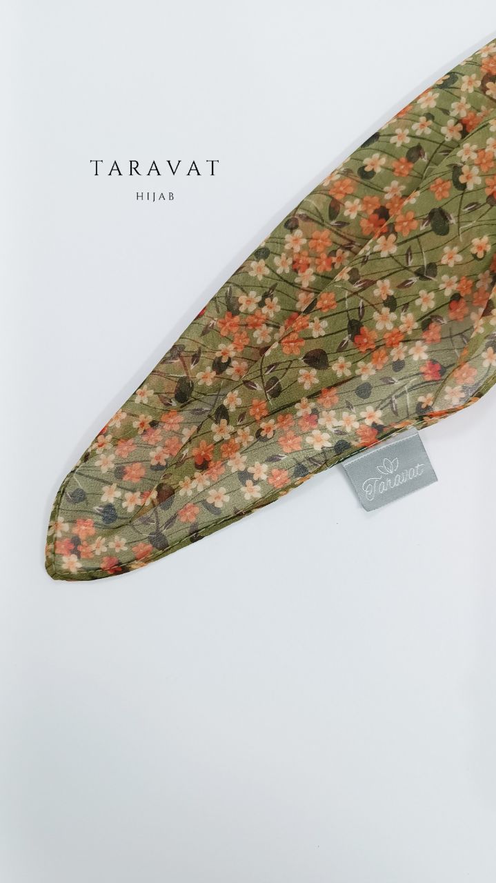 روسری حریر ژرژت سبز گل نارنجی قواره ۱۳۰