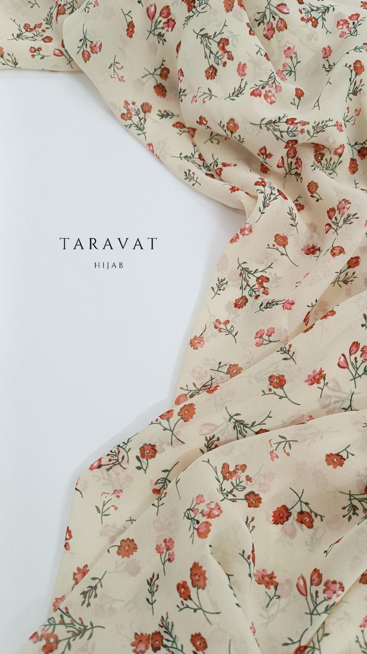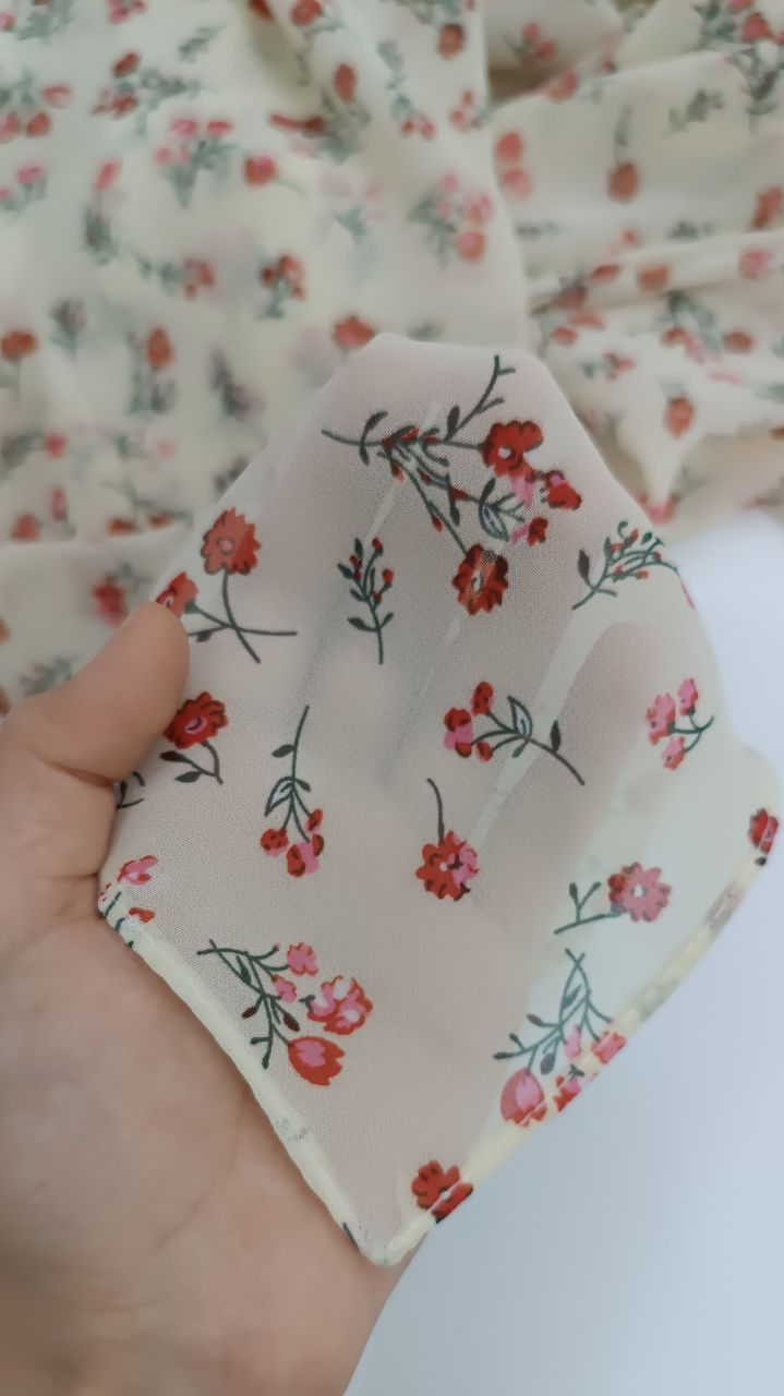 روسری حریر ژرژت نباتی گل قرمز قواره ۱۳۰