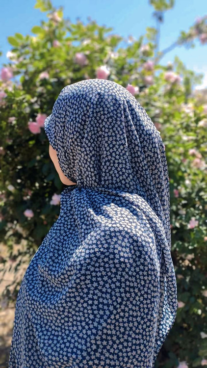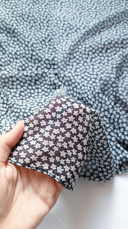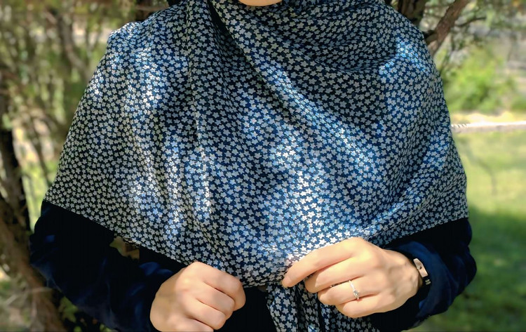 روسری حریر ژرژت سرمه ای تیره گل ریز شکوفه ای
