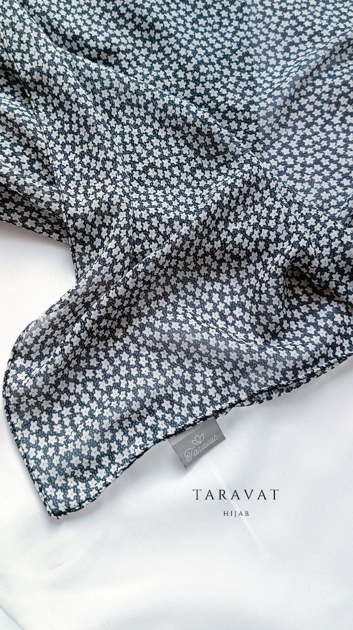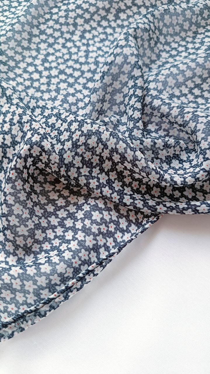 روسری حریر ژرژت سرمه ای تیره گل ریز شکوفه ای