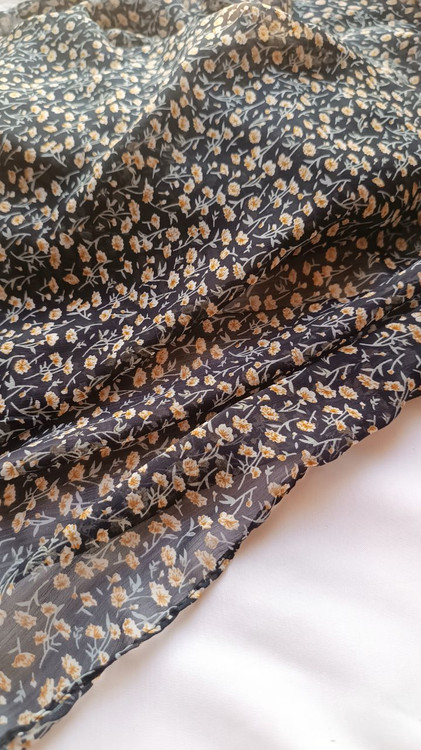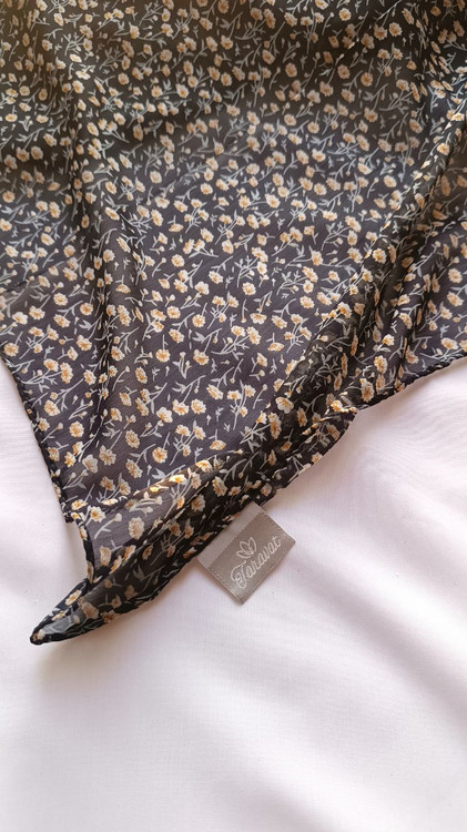 روسری حریر کریشه مشکی گل زرد
