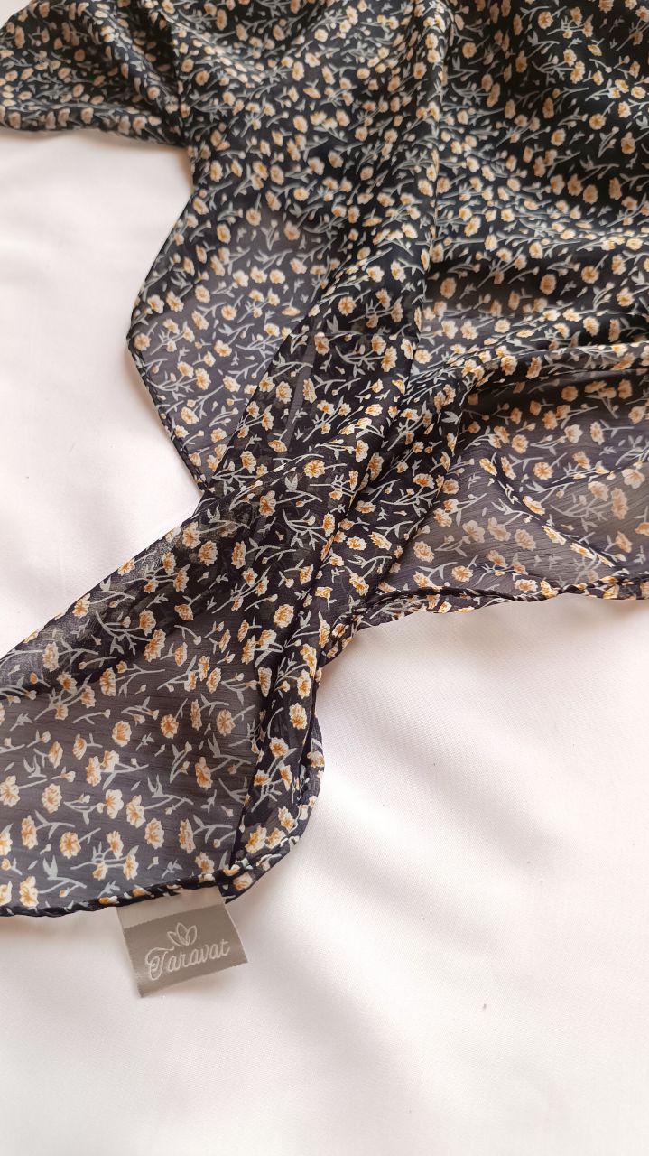 روسری حریر کریشه مشکی گل زرد
