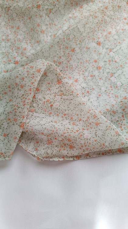 روسری حریر ژرژت سبز ملایم گل نارنجی