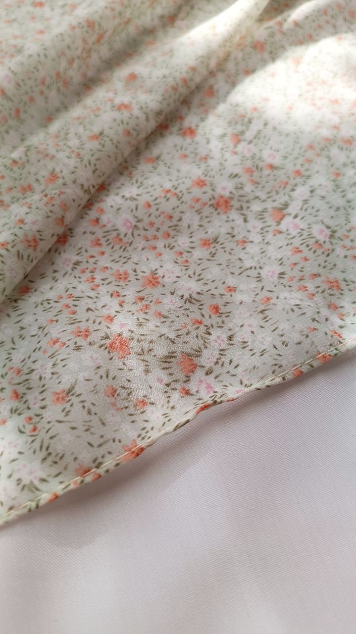روسری حریر ژرژت سبز ملایم گل نارنجی