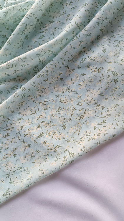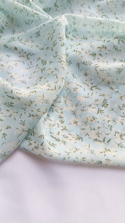 روسری حریر ژرژت آبی روشن گل سفید