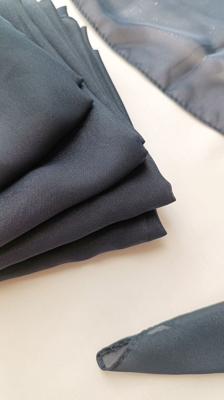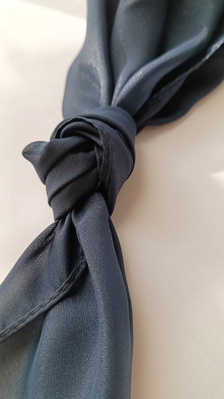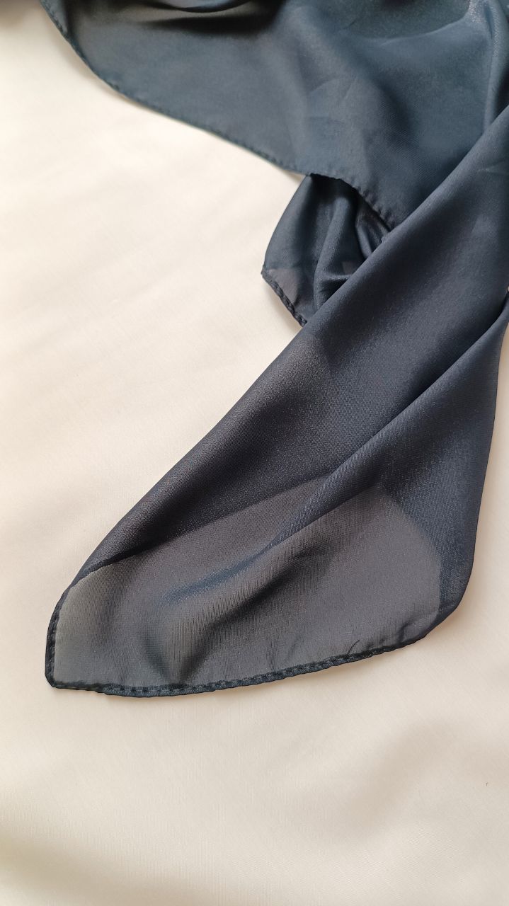 روسری حریر لمه شاین سرمه ای سبک و خنک تک لا دید دارد اما دولا دید ندارد ایستایی متوسط ( بدون طلق ایستایی داره اما برای عزیزانی که حساس هستند طلق پیشنهاد میشه)