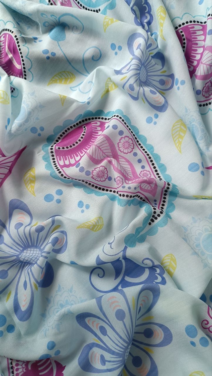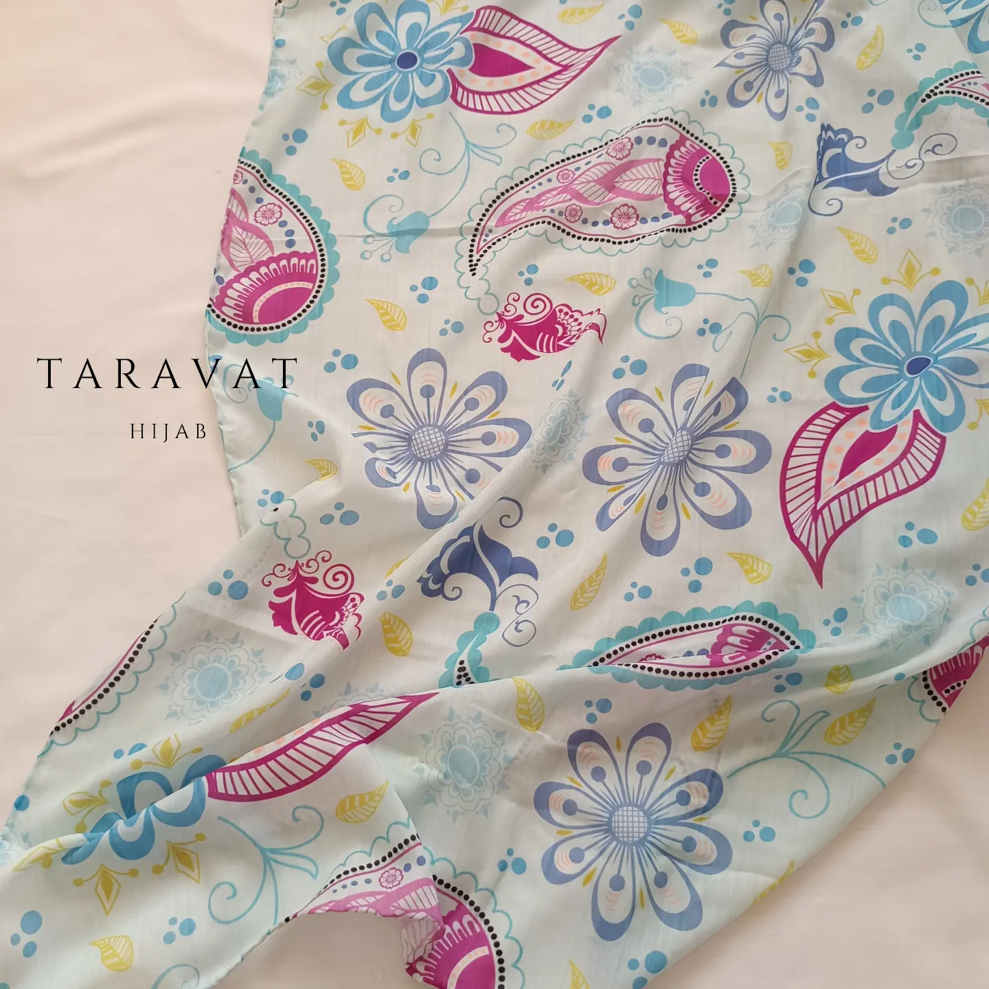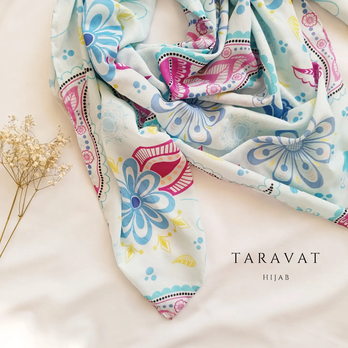 روسری نخی چهارفصل ایستایی عالی قواره حدودا ۱۳۰ دور دست دوز به دلیل تفاوت در نور و نمایشگر ها مقداری تفاوت رنگ را در نظر بگیرید