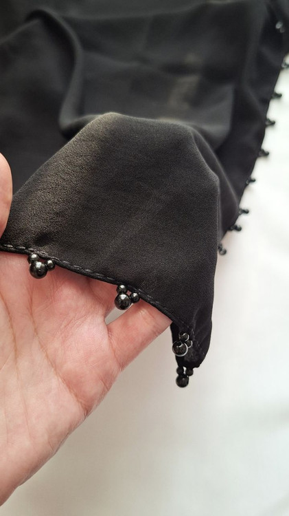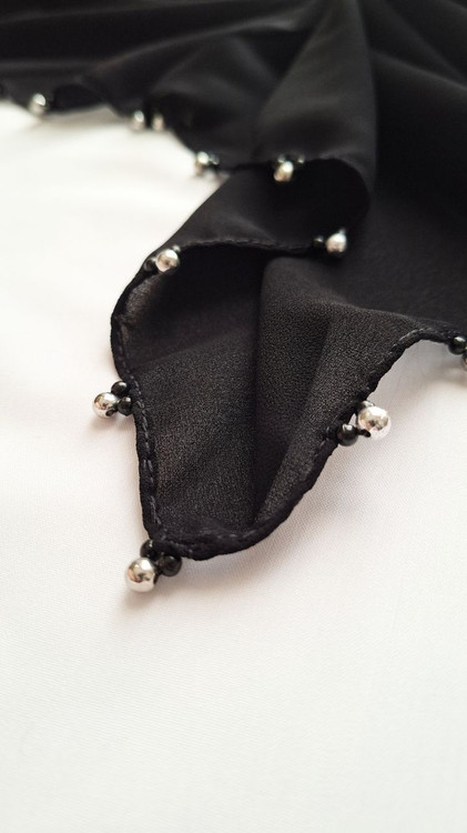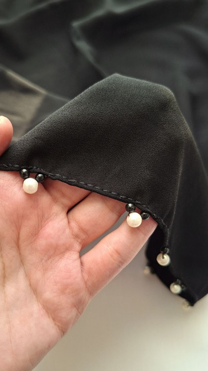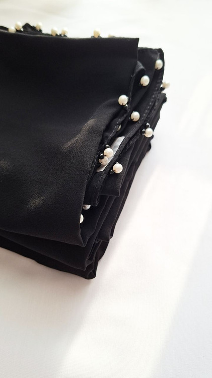 روسری کرپ حریر مشکی دور مروارید دوزی شده