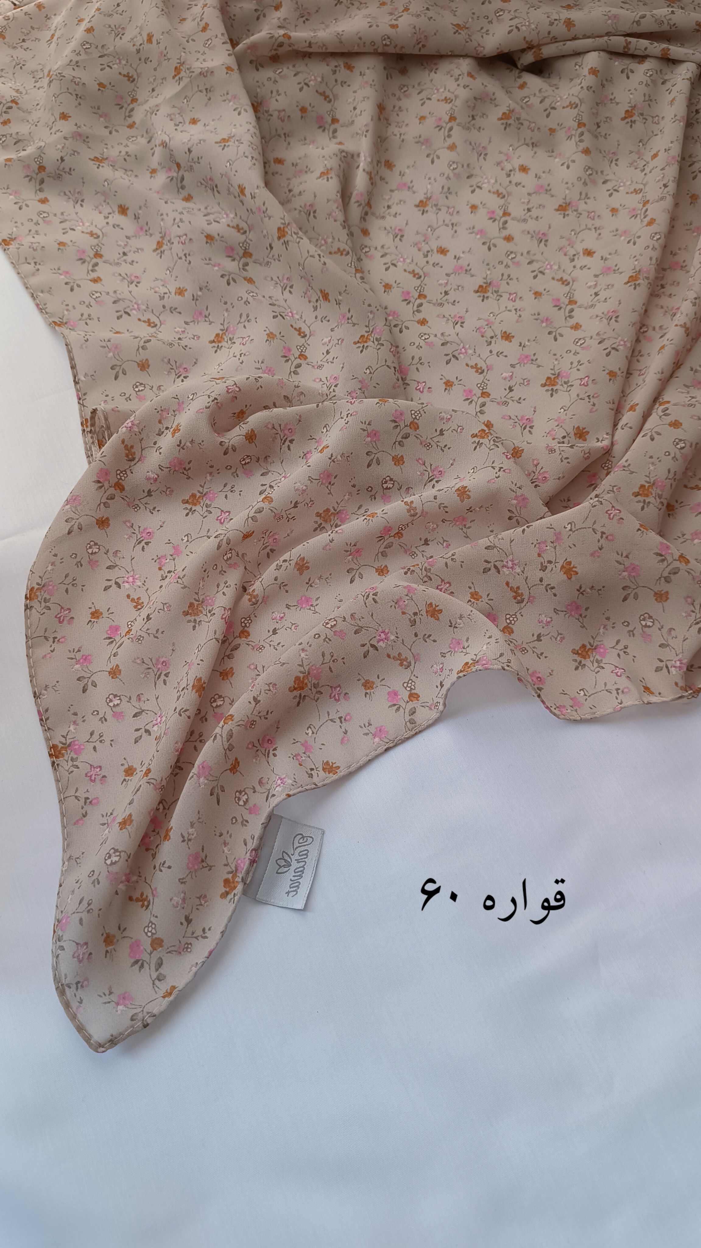 روسری قواره کوچک طوسی شنی گلدار قواره ۶۰