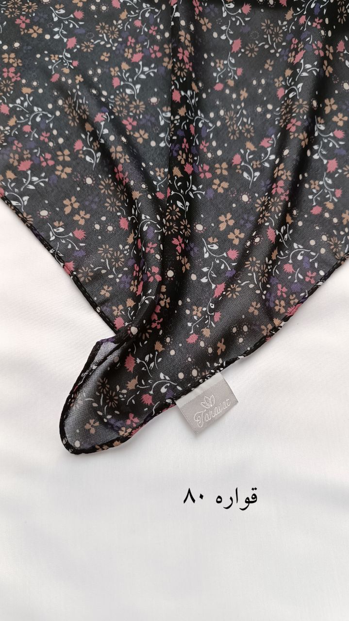روسری قواره کوچک حریر ژرژت مشکی گلدار ( ۸۰ سانت)