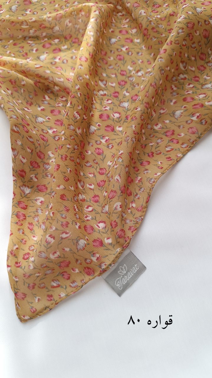 روسری قواره کوچک حریر ژرژت خردلی نخودی (۸۰ سانت)