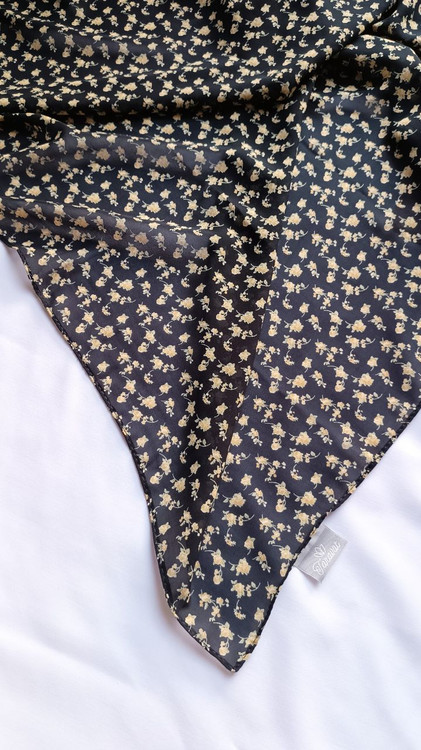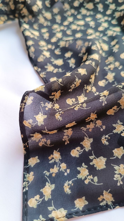 روسری حریر ژرژت مشکی گل زرد قواره ۱۳۰