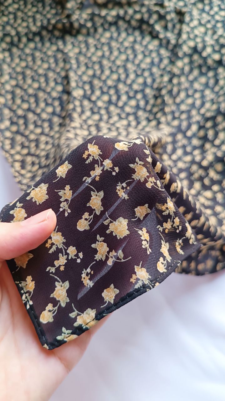 روسری حریر ژرژت مشکی گل زرد قواره ۱۳۰